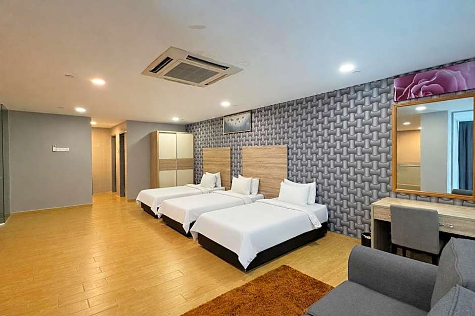 This spacious suite comes with 1 living room, 2 separate bedrooms and 2 bathrooms with a walk-in shower and free toiletries. The suite has tiled floors, a seating area with a flat-screen TV with cable channels, air conditioning, a mini-bar, as well as a tea and coffee maker. The unit has 3 beds.